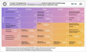 График проведения районного этапа всероссийской олимпиады школьников в Петродворцовом районе Санкт-Петербурга в 2020-2021 учебном году (открыть)